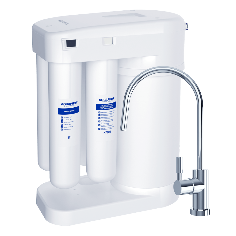 Gazdaságos és kompakt fordított ozmózis rendszer 5 literes tisztavíz tartállyal. A szűrőnek ez a változata az utolsó K7BM szűrőbetétben különbözik az Aquaphor Morion M-től és B-től. (baktericid és mineralizáló betét egyben)